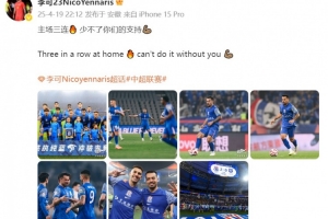 体育资讯4月19日讯 中超联赛第8轮,上海申花主场2-0击败武汉三镇。赛后,申花球员李可发文庆祝胜利。